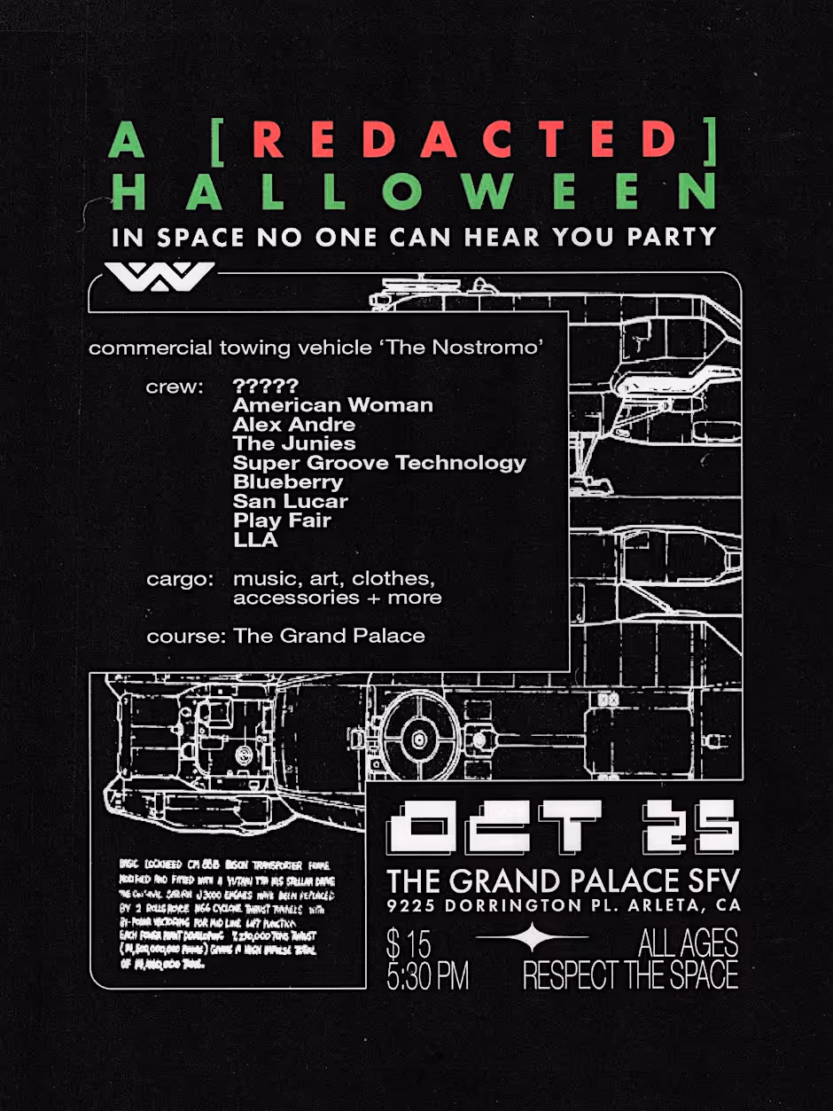 Halloween party hosted by redacted collective featuring live music and art vendors