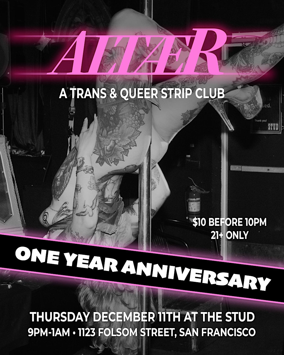 $$$$$$$$$$$$$$$$$$$ Altær STUD 12/11/25 🌹Your Favorite Place To Worship Every 2nd Thursday night in SOMA |🕯️ 9PM Come celebrate one year of Trans and Queer babes twirling under the red light!! Altær —an intimate monthly trans and queer $tr!pclub experience in the heart of San Francisco's Leather District. Join us for a night you will never forget. 📍 Stud — 1123 Folsom St, San Francisco | Live dancers start at 9:30PM | Walk-ins welcome Whether you’re a first time voyer or a lapdance daemon, Altær is your new monthly ritual. ✨ What to Expect: 💸 Bring cash, lots of it 🕯️ 13 dancers, 2 poles 💎 Live entertainment in a historic queer venue🍸 pole & h*le(y) worship 💰 private dances 💵 dolls x femme x trans supremacy 💄 Perfect for date nights or spontaneous solo escapes. Treat yourself to some t!tt!3$! As always-- No photo. No video. No creeps. Perverts who tip well highly welcomed. Mark your calendars and spoil us every month!