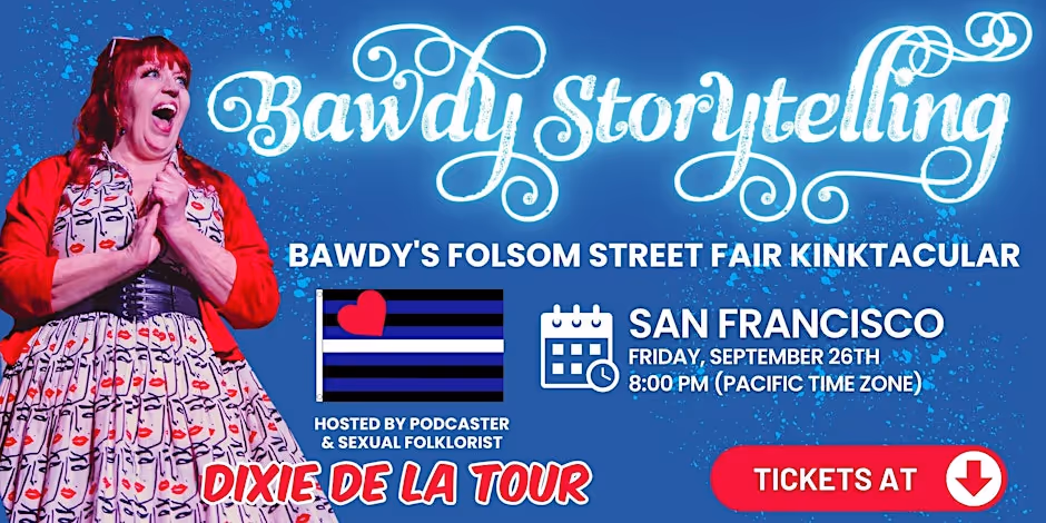 Are you ready for a ★★★★★ Folsom Weekend? Friday, Sept 26th at the Verdi Club 2424 Mariposa, San Francisco Doors at 7, Stories at 8 PM •••••••••••••••••••••••••••••••••••• "The Moth for Pervs" - LA Weekly ••••••••••••••••••••••••••••••••••• 🖤 Bawdy Storytelling: Filthy & Folsom-Ready 🌈 (Advanced ticketing is strongly recommended and space is limited! Get yours now cause we tend to sell out) And RSVP on Fetlife or Facebook to let friends know you're coming! This Evening of curated True - & NSFW! - Stories & Songs features: ❤ "Queen troubadour of intelligent sex balladry" Shirley Gnome ❤ Color-Coded Chaos Goblic & Pleasure Witch Ali Bravo ❤ Fetish content creator & seasoned kink presenter Nyxie Noc ❤ Seasoned PornStud & Fornication Founder Ray Dalton ❤ Trans Femme LeatherDyke Madam Folly ❤ Hosted by Sexual Folklorist Dixie De La Tour ❤ Come say HI to infamous “SuperNova of Kink’ Midori ! ❤ Erotic Art & Live Sketching by Artist Nadia Vanilla ❤ Play Bang-O to make Friends (& FWBs) 💋 ❤ Bang-O Sponsorship from Magic Wand, YESSSS ❤ A Spanktacular Bang-O Bounty from The Kink Store ❤ Abundance from wellness brand Momotaro ❤ Kinky Goodies from Fedora Fabrications ❤ Custom Bawdy Cocktails that sound Dirty - but taste Delicious! Gear up, Perverts—Bawdy Storytelling is getting down and dirty for Folsom Street Fair! Whether you’re a voyeur, an exhibitionist, or just a story-lover who’s down for a deliciously uncensored night out, Bawdy welcomes you with open arms—and maybe a riding crop. And this time, we’re flying in infamous Canadian Comedian Shirley Gnome as our Musical Guest! Join legendary host Dixie De La Tour for a no-holes-barred night of true stories that celebrates the wild, the wicked, and the wonderfully quirky. Leather? Check. Power dynamics? Always. Fisting, flogging, genderfuckery, public play, pup hoods, and that one time with the fire cupping drag queen? You’ll hear it all—told live and raw by real people who have actually lived it. 💋 One stage. One mic. True stories that’ll change how you think about Sex and Kink. Expect stories that are kinky, filthy, heartfelt, hilarious—and 100% real. Bawdy’s stage is where the most unconventional parts of ourselves are celebrated, not censored. And for Folsom, we’re turning the dial all the way up to “consensual chaos.” 💥 Come revel in the messy, magical truth of queer sex, leather love, and everything that your vanilla friends think you made up, but is absolutely true. 🎤 Come find out why Bawdy has been filling rooms (and hearts) for nearly 20 years. Bawdy is Storytelling... with a Climax. Performers include: • Shirley Gnome is "The Queen troubadour of intelligent black-comic sex balladry” - The Edmonton Journal (CAN). She sings songs about how we mash junk and try to love each other. From the west coast of Canada comes this multi-award winning cabaret musician, whose all original music is hilarious, uncensored, honest, subversive, irreverent, witty, empowering, and taboo. Her clever lyrics go down smooth with her gorgeous vocals, and her charm will disarm you through topics both provocative and silly. With genres as wide ranging as country, folk, rock, EDM, electro pop and r&b, her versatility as a musician and songwriter lends itself to her hilarious sensibility. Her one-woman cabaret shows have wowed audiences and critics alike around the world, with sell out shows across Canada, the US, Australia, New Zealand and the UK. She’s appeared at JFL Northwest, The Melbourne International Comedy Festival and CBC’s The Debaters. She is signed with Canada's largest independent music label (604 Records) with Comedy Here Often. Her album Decoxification was nominated for a Juno Award for Comedy Album of the Year 2021. Her latest release Live, Bare and Natural was released on March 27th, 2025.