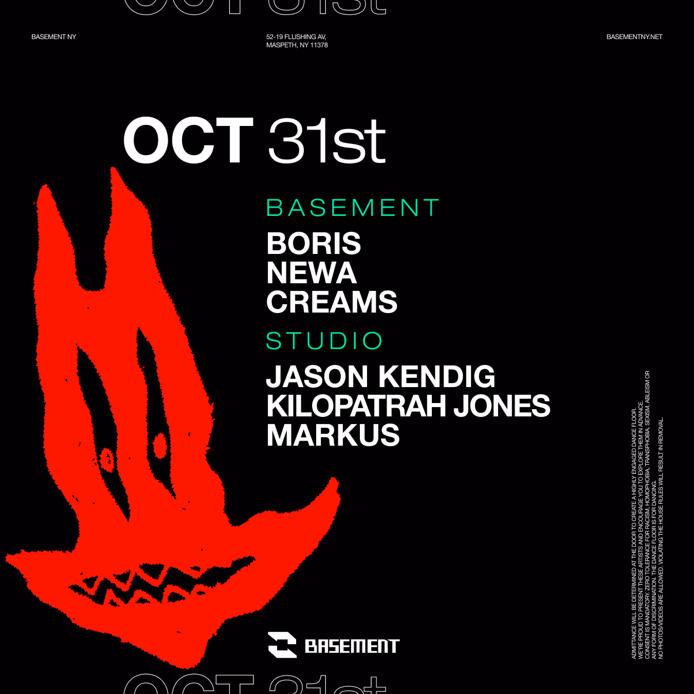 Boris headlines BASEMENT. He is an artist whose indefatigable creativity seems to be in a constant state of renewal. Where some musicians burn out, Boris’ streak continues decades into his career. Whether in his immaculate DJ sets or occasional collaborations, Boris always finds a clarity of purpose and a deep, hypnotic tone. There’s a mixture of simmering, tripping mindscapes and undeniable groove power on display, delivered with the assured touch of a master. BASEMENT resident Newa returns to the club. The Georgian artist is one of the heroes of her hometown of Tbilisi, a selector who taps into techno’s fiery core with intuitive ease. A true DJ’s DJ, Newa skips the fuss and keeps the focus squarely on the music, delivering one set after another that hits with pure, throbbing power. Fellow Georgian Creams returns following her debut in June. Although her productions often skew to overt pop, her DJ sets move effortlessly between high energy electro and booming techno. Creams meets the moment with a sense of pure invention. Who better to lead STUDIO than Jason Kendig? One of the most beloved figures in the US house underground, his decades behind the booth and tireless community organizing has been an inspiration. The man is a gem, an artist can effortlessly conjure the sensual, expansive heart of house music at a moment’s notice. Kendig is a fixture at STUDIO and an artist who continues to push the sound forward, bridging eras and generations with a timeless touch. Kilopatrah Jones keeps the energy at a fever pitch, with a focus squarely on the ecstatic. There’s a reason she’s made such an impact over the last few years; Jones wrings out every last drop of soul from her record collection, bringing the dance floor to ecstatic heights. Markus shifts the narrative to the darker edges, with a bombastic rave energy that sizzles from start to finish. His b2b with Makadsi at WIRE was the definition of a melter. For this night, he’s put together a special house set just for STUDIO. ■ No photos or videos ■ Ticket purchase does not guarantee entrance ■ No phone use on the dancefloor ■ The dance floor is for dancing, not conversation ■ No glowing/flashing clothes or items ■ Respect other people's space, no shuffling ■ Consent is mandatory ■ Zero tolerance for racism, homophobia, transphobia, sexism, ableism or any form of discrimination ■ Take care of each other, alert our staff if somebody isn't feeling well ■ Violating the house rules will result in removal