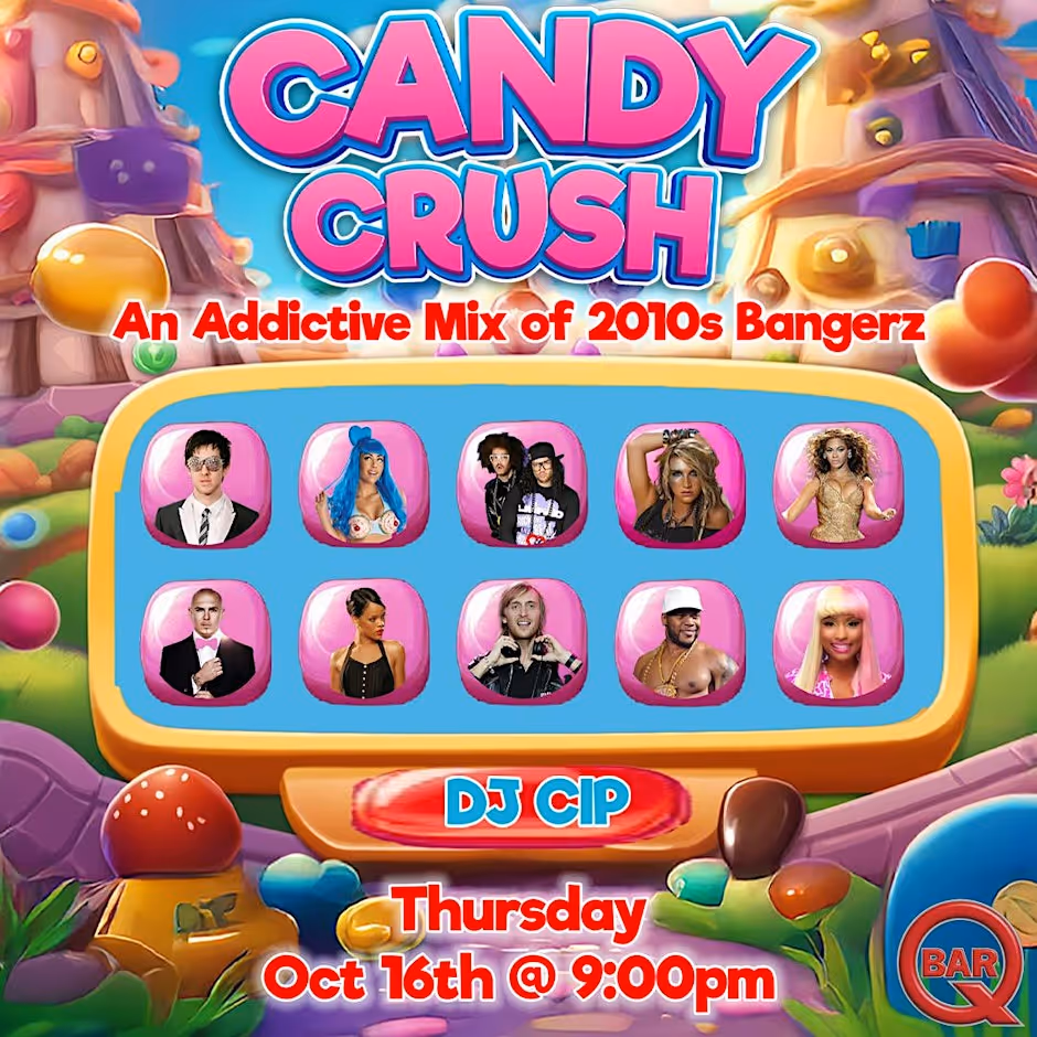 Get ready to pop, drop, and slay through the most iconic decade of bangers! 🍭✨ CANDY CRUSH! – The 2010s Throwback Party ✨🍭 Let’s rewind to the golden age of pop! When Gaga ruled the radio, Kesha brushed her teeth with Jack, and we all lived for Tumblr aesthetics and glitter eyeliner 😍 🎧 DJ CIP spinning an addictive mix of 2010s anthems — Kesha, Katy, Nicki, Carly Rae, Pitbull, Gaga, Taylor, Bey, RiRi, Calvin Harris, LMFAO & more of your Friday-night bops 🎶 💖 Throwback drink specials 🍹 💅 “Born This Way” energy only 🌈 📸 Selfie station, candy décor, and a dance floor ready for your best TikTok-before-TikTok moves 💃 🪩 FREE with RSVP! 📍 QBar SF – 456 Castro St, San Francisco 🕘 9PM–1AM | 21+ Come serve Y2Gay realness, relive your “We Found Love” era, and party like it’s the Born This Way Ball again 💋