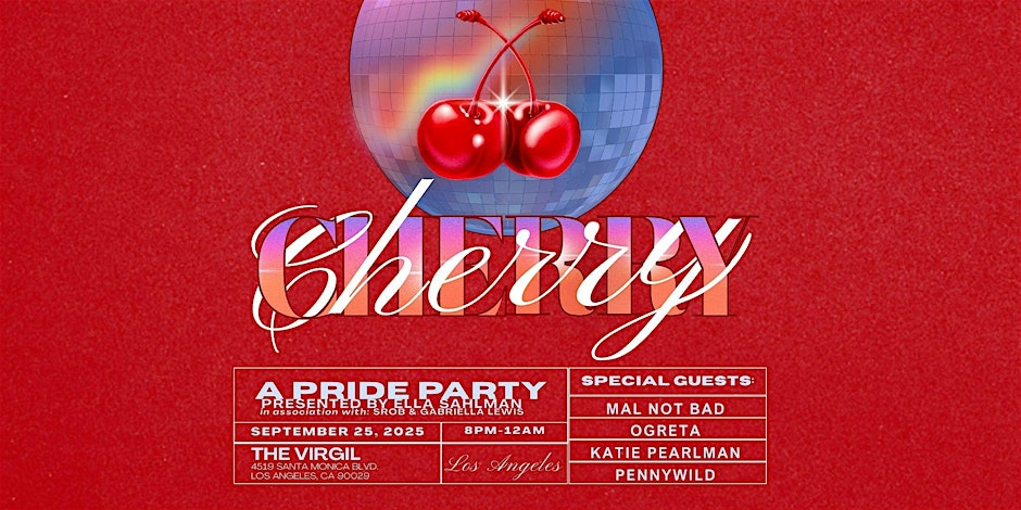 CHERRY LA: A Turntable Series (pride edition) Get ready to groove at The Virgil for a special pride edition of CHERRY: A Turntable Series! Join us for a night of amazing music and good vibes as we celebrate queer love. Our talented artists; Mal Not Bad, Ogreta & Katie Pearlman will be performing as well as our DJ, PENNYWILD who will be spinning the hottest tracks to keep you dancing all night long. We will be highlighting queer albums and showcasing them throughout the night. Don't miss out on this epic event <3 Presented by Ella Sahlman In association with SROB & Gabriella Lewis