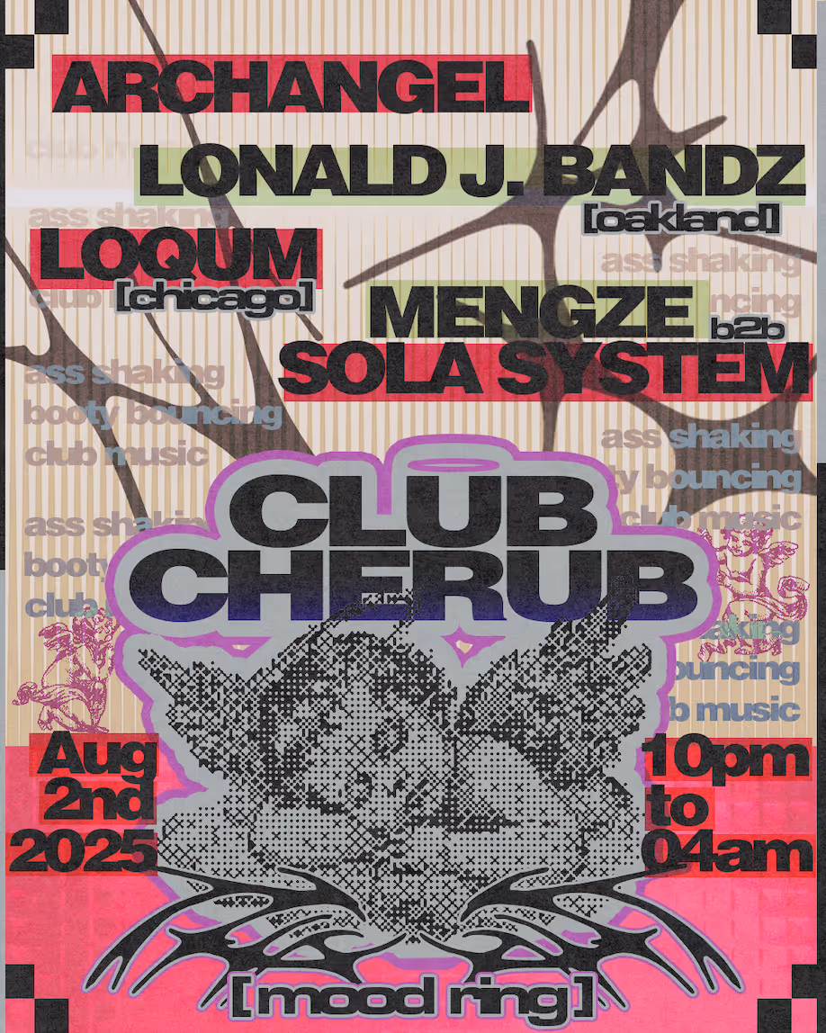 A dance music night at Mood Ring (Brooklyn), bringing in club/footwork DJs from around the country. The promotional copy describes interstate DJ talent (Lonald J. Bandz from Oakland, Loqum from Chicago, NYC’s own Archangel, etc.) in a “special night” of queer club beats.