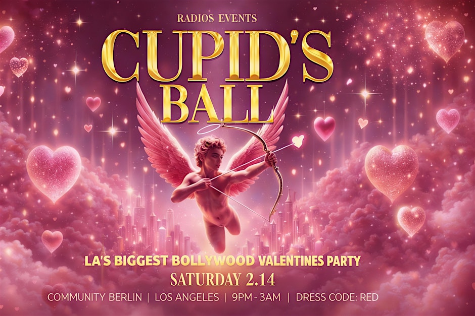 Radio5 Events proudly presents... CUPIDS BALL ❤️ LA’S BIGGEST BOLLYWOOD VALENTINE’S BASH ❤️ Wear Red • Dance til 3am • 1,000+ Every Year Valentine’s weekend in LA hits different when Radio5 takes over Community Berlin for the city’s biggest Bollywood Valentine’s party. This is a dress-to-impress, red-hot, dance-floor-packed night with 1,000+ guests, massive energy, and nonstop music. Whether you’re single, taken, or complicated — this is the Valentine’s plan. 🔥 THE VIBE ❤️ Red outfits everywhere ❤️ A packed, beautiful crowd ❤️ High-energy Boiler room vibe ❤️ Elevated Production ❤️ Food trucks Expect a full-scale nightclub experience with elevated production, lights, sound, and an atmosphere built for unforgettable memories.