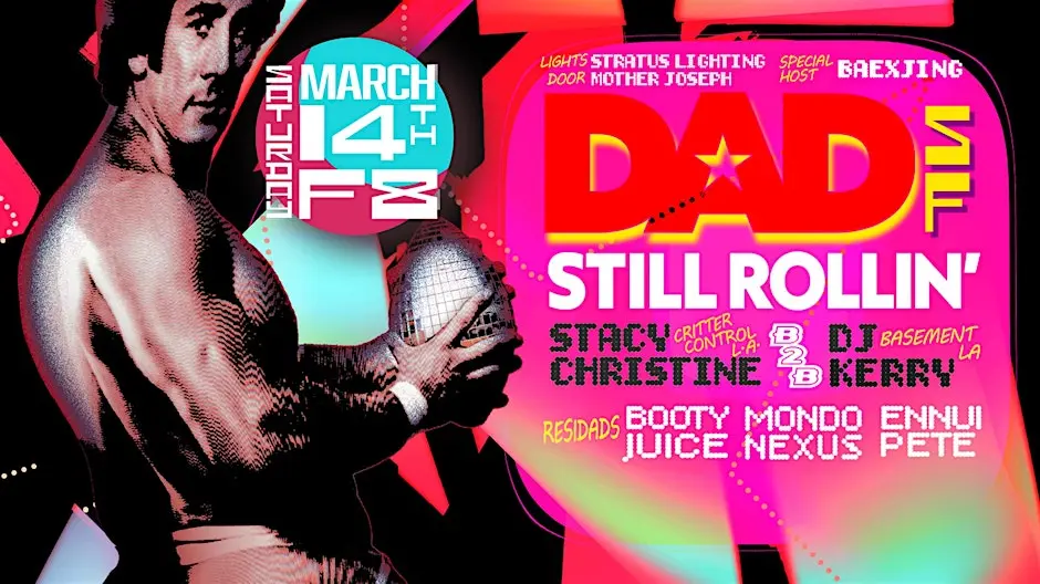 Shake off the drizzle with Stacy Christine & DJ Kerry! Forecast: Still Rollin'. No chill. March winds blowing rain? Cute. DADs bringing the heat! ResiDADs Booty Juice, Mondo Nexus, and Ennui Pete crack the seal on the night with grooves that loosen hips and lower inhibitions. Then, LA groove force Stacy Christine and deep-digging selector DJ Kerry — the masterminds behind the beloved party Still Rollin’ — take control. Expect disco shimmer. House heat. Basslines that refuse to go home. Forecast: high humidity. Zero chill. No date required. Bring your ex, your next, or your situationship. We’ve got overhead storage under the disco dad bod. ✨🪩