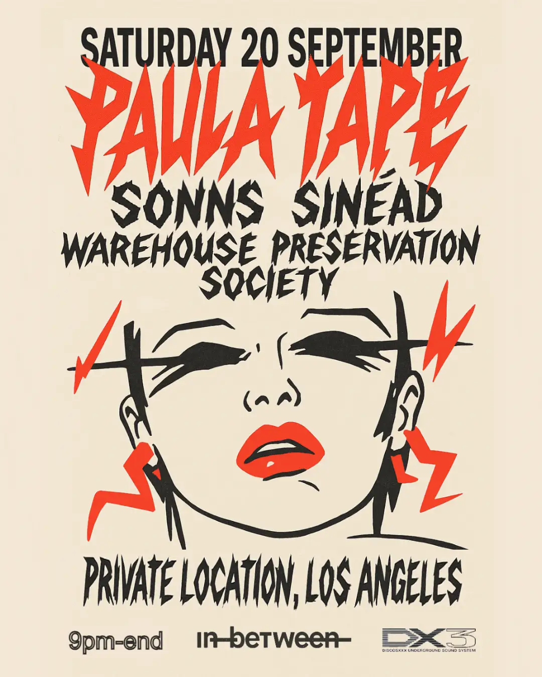 One of our most loved and trusted body movers, the queen of acid balearica and latin-infused jackin’ boppers, Paula Tape joins us to rock the house for ONE NIGHT ONLY. Also guiding our nocturnal journey: the beloved Sinéad, local heavy hitters Warehouse Preservation Society, and the birthday man of the hour, SONNS—yes, his actual birthday! This one is not to be missed: OPEN AIR at a private location we’ve come to adore, with BIG SOUND and atmosphere curated by our most trusted crew. Make your plans, as this will be a limited capacity party to keep the vibes thick and intimate!