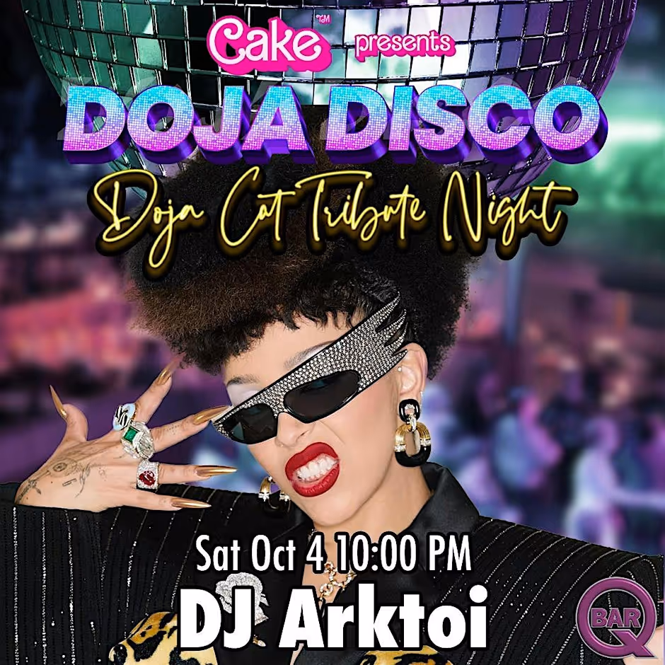 San Francisco, Are you ready to step into Doja World? The Castro’s fiercest dancefloor transforms into a queer disco paradise celebrating the one and only Doja Cat — her music, her fashion, her fantasy. 🔥 DJ Arktoi will be serving a nonstop mix of Doja’s biggest hits, deep cuts, and collabs alongside queer faves and hyper-pop anthems that will keep the dancefloor purring all night. 💅 Doja Lewks – from feline fierceness to disco divas 🍸 Doja Drinks Specials – cocktails as colorful and chaotic as Doja herself 🌟 Doja Decor – camp, glam, and unapologetically extra 👠 Doja Drag Performances that will leave you gagged 📸 Photographer ready to capture every slay, strut, and serve ✨ Celebrate the release of Doja Cat’s new album, Vie with your queer fam. Because at Doja Disco, the dancefloor is for everyone and the drama is always glamorous. ✨ 📅 Saturday, October 4th ⏰ 9PM – 2AM 📍 QBarSF – 456 Castro St, San Francisco 🔞 21+ Only 🎟 Limited Discount Advance Tix Available Now Because baby… it’s a Doja world, and we’re just dancing in it. 💋