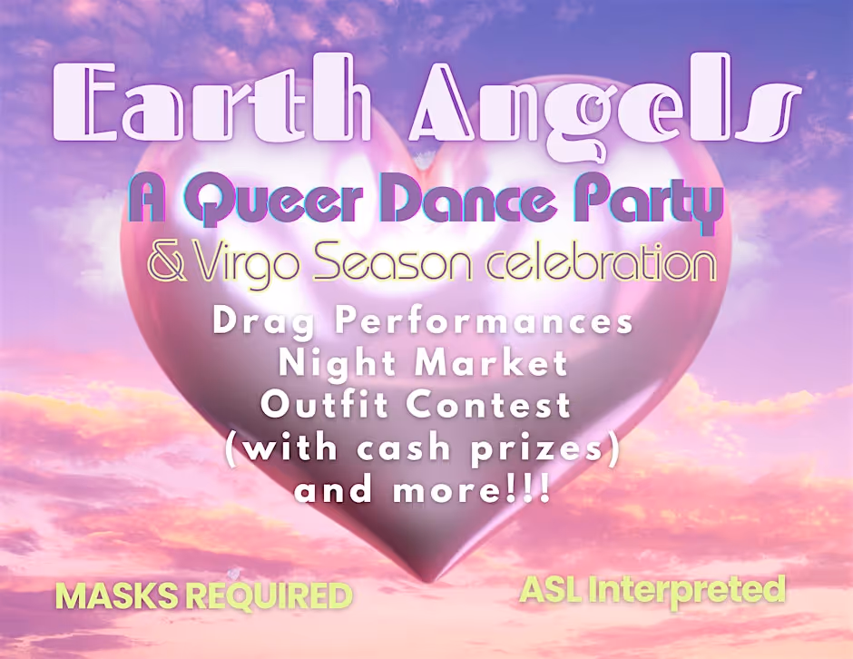 ✨Welcome to the non binary garden of Eden!!! ✨ Prepare to be captivated by dreamy tunes courtesy of EUPHEMIA, and witness a series of show-stopping drag performances by Glamputee, LOTUS BOY, Pissy E. Sissy, Taipei and VERA! embodying the theme of "Eco-sexual vs. Ethereal". In true Virgo season spirit, we are going all out. There will be a curated selection of queer local vendors, cash prizes for both the "Most Heavenly" and "Most Earthly" outfits, and special gifts for all Virgos in the audience. Dressing up is highly encouraged. 7th West is ADA accessible, and ASL interpretation is available to ensure all our angels can participate in the celebration. NOTE: KN95 MASKS REQUIRED AND PROVIDED FOR ALL ATTENDEES ~Accessibility Notes ~ Masks Required for audience at all times. You may only take your mask off briefly to eat or drink outside. Performers required to have (2) negative rapid tests, 48 hrs apart prior to event. Stage is OUTSIDE Venue is Wheelchair accessible Air purifiers inside the Bar Lots of outside seating avaliable ASL Intepretation for drag performances Far UV sanitizer outside in dance stage area ADA Bathrooms inside Bar Food available for purchase at Bar So come as your most divine self, whether that's a earthly deity or a celestial being, and get ready for a night of magic!!! See you Angels there 💖
