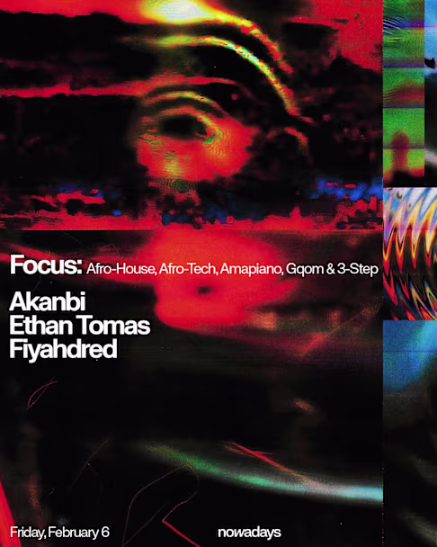 For this edition of our Focus series, we hone in on the interconnected African genres of Afro-House, Afro-Tech, Amapiano, Gqom, and 3-step with three DJs whose sets are as playful and sexy as they are spiritually moving. NYC is represented by GROOVY GROOVY rave man Akanbi, as well as GINJA founder Ethan Tomas, who makes his Nowadays debut. We welcome another debutante in South London DJ and producer and Hyperdub affiliate Fiyahdred, rounding out the lineup with funky UK vibes. /// RSVP is $10 before 11pm and $15 before midnight. An RSVP is good for one person. If you're bringing friends, please have them RSVP here as well. We stop taking RSVPs at 6pm on the day of the party. In order to receive the RSVP discount, you must be at the ticket desk by the cutoff time and not just in line. It's wise to arrive early to make sure you're not standing in line when the time comes. An RSVP does not guarantee entry. Sometimes parties do sell out, so if you want to be sure you'll get in, it's best to grab a ticket in advance.