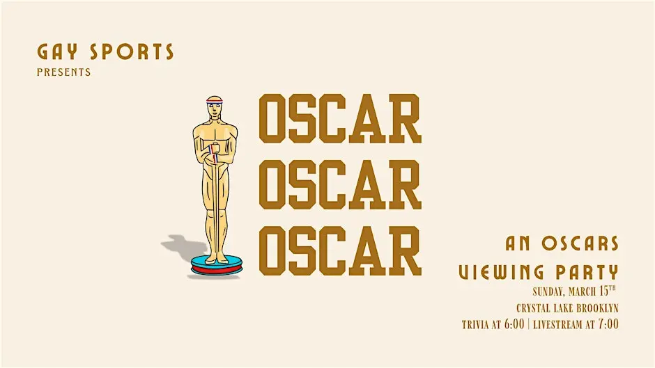 The most glamorously competitive Oscars watch party this side of the East River. Gay Sports Presents: Oscar Oscar Oscar Imagine, if you will, that you are perfectly tipsy in a dim Brooklyn bar full of girls, gays, and their distinguished guests. It's the night of the Academy Awards. Everyone is perfectly tipsy, in fact. And you all look so beautiful. You're in your best eveningwear, your special occasion jacket, your nice shoes. The glow of the projector screen is shining over the room. You are watching Mikey Madison take the stage to present this year's Best Actress award.