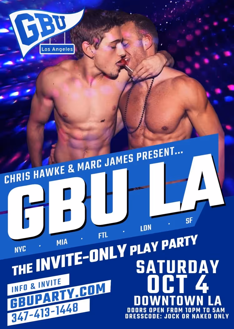 SATURDAY October 4th 10pm - 5am in DTLA — Jock or Naked ONLY! Massive Warehouse PLAY SPACE in DTLA Complimentary Drinks All Night LIVE DJ!!