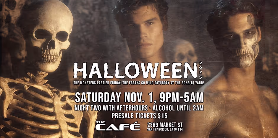 Welcome to Halloween Saturday: The Bone(R) Yard at The Cafe! With Round 2 of RETURN OF AFTERHOURS until 5AM! Get ready for a spooktacular night on November 1, 2025 at 9:00 PM. Join us for a bone-chilling evening filled with creepy cocktails, eerie music, and frighteningly fun activities. Come dressed in your most ghoulish attire. Don't miss out on the thrills and chills at The Bone(R) Yard this Halloween!