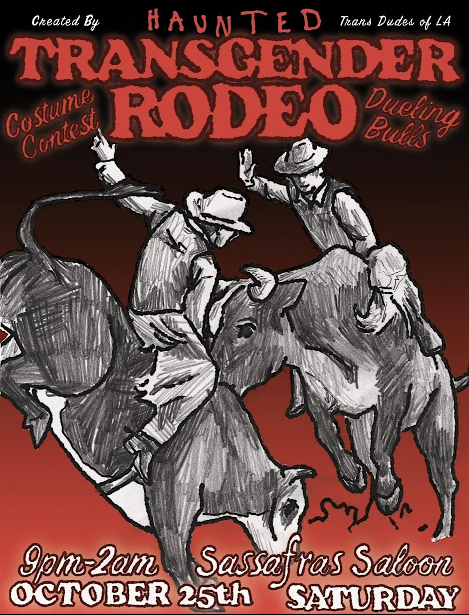 HOLD ONTO YOUR HORMONES — TRANSGENDER RODEO is back and more haunted than ever at Sassafras Saloon 👻 featuring TWO mechanical bulls for a dueling bull riding contest!! 🐂 Competition Host: Gabe the Babe 🥵🎶 DJs Cowbow Blvk, Meduuusa, Silver 🪩 gogo dancers TBA