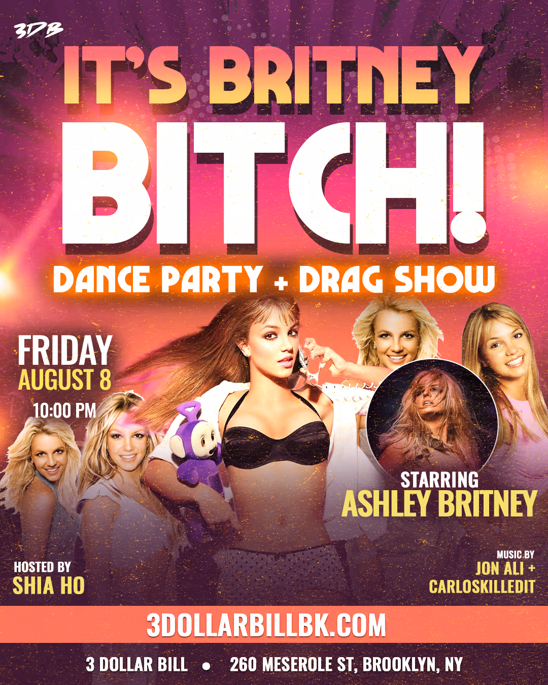 A Britney Spears–themed queer dance night at 3 Dollar Bill (Brooklyn), where DJs spin pop hits in a Spears tribute celebration.