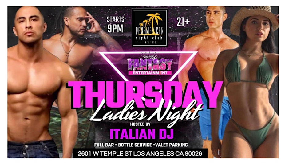π Ladies Night Extravaganza β Every Thursday! π Get ready for the ultimate Ladies Night Out every Thursday at Pan American Nightclub! Join us for an unforgettable evening filled with thrilling male entertainers, electrifying performances, and non-stop great music from the hottest DJs spinning all your favorite hits! π₯ What to Expect: π Sensational male entertainers bringing the heat πΆ High-energy music from top DJs all night long πΉ Delicious cocktails & drink specials π Fun surprises & VIP experiences π No Cover Charge for Ladies Before 10:30 PM! π ποΈ Cover Charge: $20 π When: Every Thursday β° Time: 9 PM β 2 AM π Where: Pan American Nightclub π Address: 2601 W. Temple Street, Los Angeles, CA 90026 Gather your girls and let loose at the hottest Ladies Night in town! You donβt want to miss this! π Ladies, this night is all about YOU! Secure your spot now and get ready to be entertained like never before! Arrive early and dance the night away! ποΈπ #LadiesNight #GirlsJustWannaHaveFun #MaleEntertainment #DanceAllNight #LosAngelesNightlife
