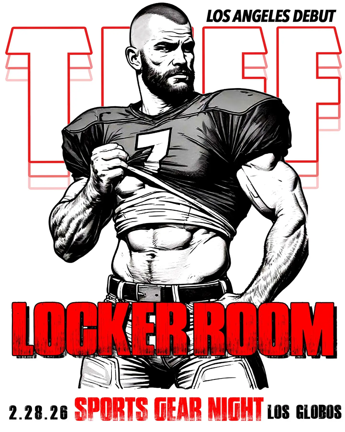 LOCKER ROOM by TUFF Introducing LOCKER ROOM by TUFF - LOS Angeles Debut! Dress like you belong in the locker room. Stay longer than planned. A night inspired by European sports fetish culture and classic locker room aesthetics. LOCKER ROOM by TUFF draws from the energy of European fetish nights, team sports, training spaces, and post-match rituals. It focuses on uniforms, sweat, and the quiet tension found in shared spaces built for bodies, discipline, and competition. This is gear that belongs on the field, the mat, the court, the ring, and the weight room. You will see: • Football, rugby, and soccer kits • Wrestling singlets and training gear • Basketball shorts and jerseys • Jockstraps and classic bodybuilder gear • Tube socks and crew socks • Trainers, cleats, and statement sneakers Authentic sports gear is what we are looking for, paired with the confidence that comes from wearing it well. No costumes. No parody. Just locker room energy.