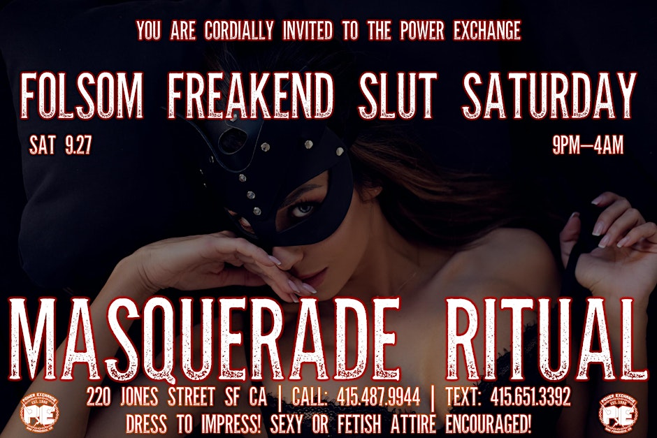 Masks & secrets collide at Power Exchange. Folsom Freakend Slut Saturday—All 3 floors open, $10 off before 11PM!