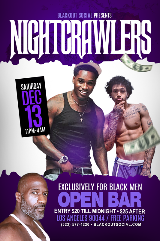 Saturday, December 13, 2025 11pm till 4am Los Angeles, CA 90044 $20 till midnight, $25 after / Open bar Underwear optional / Free parking (323) 577-4220 We accept cash, Cash App, Apple Pay, Venmo, and Zelle.