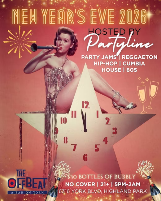 Ring in the New Year with us for an all night celebration hosted by Partyline. They'll be spinning a mix of party jams, cumbias, reggaeton and more. $30 bottles of bubbly to help commemorate. NO COVER | 21+