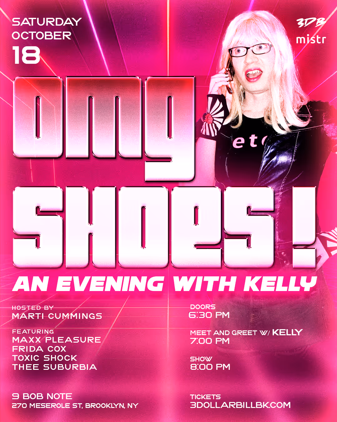😳👠OMG Shoes! 👠😳 An Evening with Kelly! ( @liamksullivan) The Viral YouTube Star comes to 3DB Saturday, October 18 💫 Host: @martigcummings ✨Featuring: @toxic.shock + @theesuburbia + @fridacoxny + @mr.mpleasure Doors: 6:30 PM VIP Meet + Greet: 7:00 PM Show: 8:00 PM