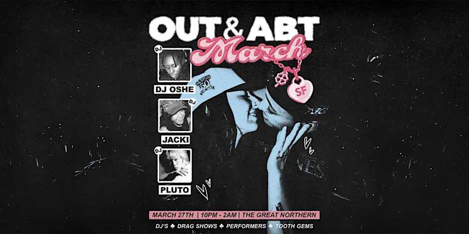 Out & Abt: A Queer Dance Party Out & Abt is a 21+ dance party for sapphic, queer, and trans folks to flirt, dance, and mingle. (If you do not fit into this demographic we kindly ask that you reserve this space for the queer community.)