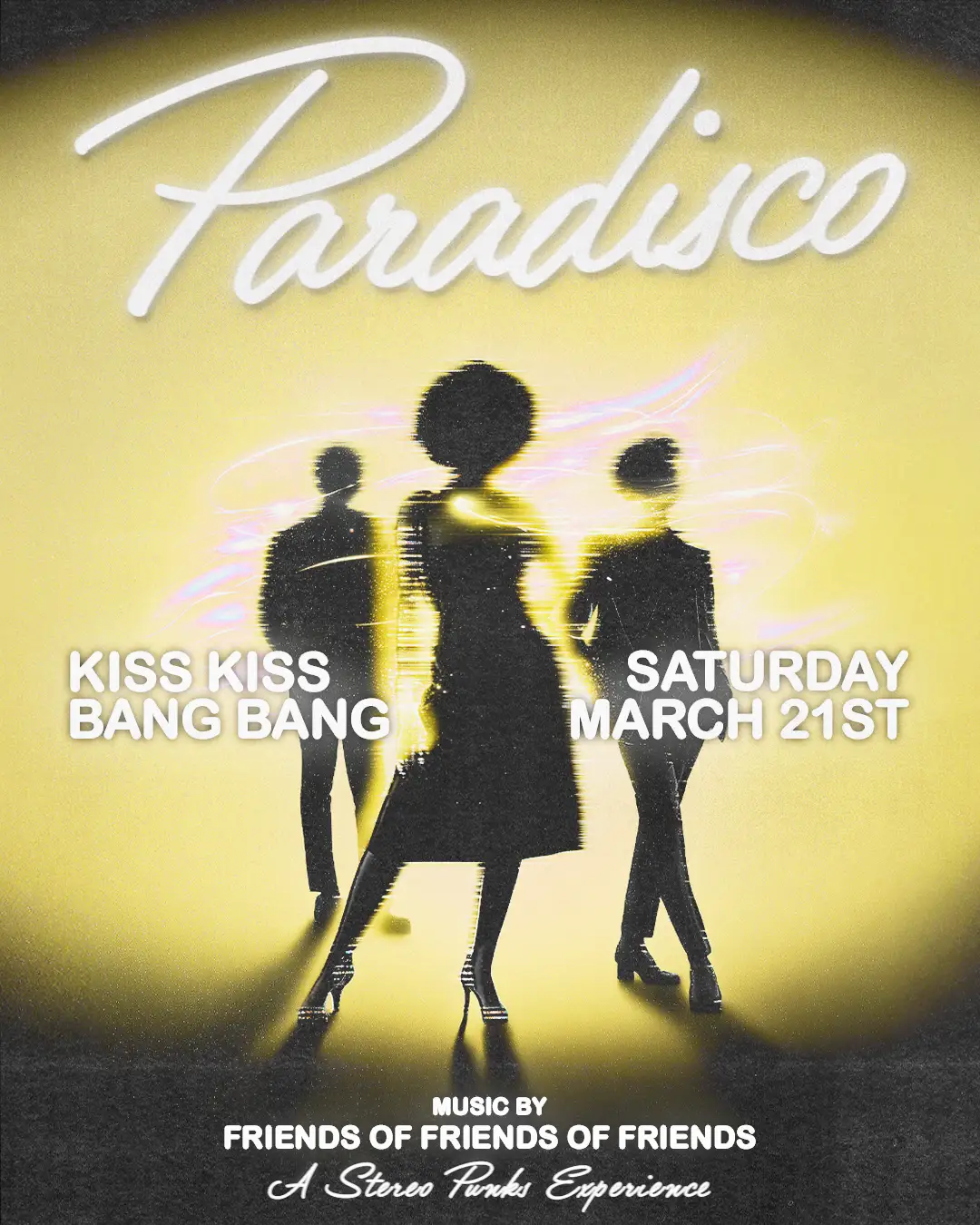 Paradisco returns to Kiss Kiss Bang Bang on Saturday, March 21 for another night of disco and disco house at the home of disco in LA. Our monthly party celebrates disco culture through modern disco and disco house, with Friend of Freinds of Friends delivering dance-floor-driven sets built for the KKBB room. Kiss Kiss Bang Bang is a disco paradise, featuring a glowing checkered dance floor, roller skater performances, immersive decor, and nonstop movement from wall to wall. Paradisco fully taps into that energy for a night that feels elevated, playful, and relentlessly fun.