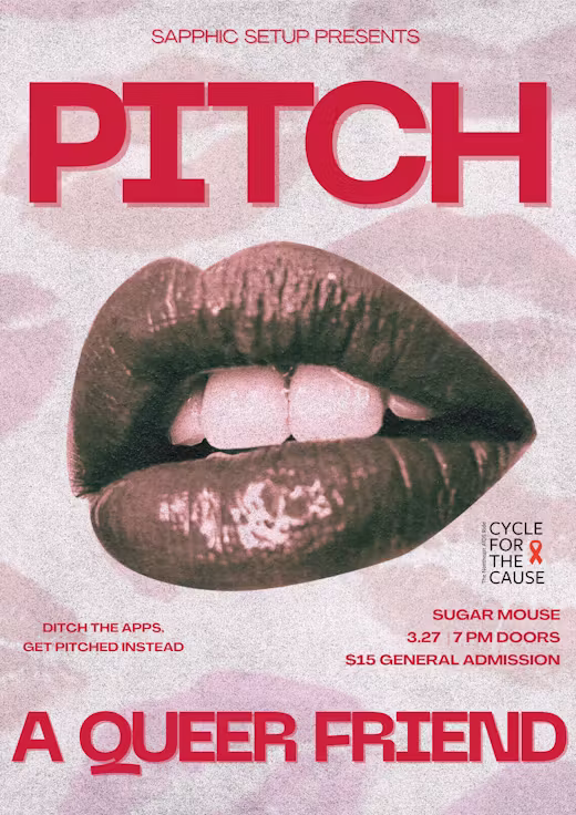 Valentine’s Day is over. The roses are dead. We’re officially tired freezing and being single (need someone to cuddle for warmth y'knw). So as the days (slowly) get longer, get ready because Pitch a Queer Friend is back for its 4th edition!! Come by to your favorite solution to queer dating burnout. The Hinge algorithm isn't helping anyone, no one responds on Raya, and the queer women on Feeld are scarce. Help out your friends that are still hot, charming, emotionally available, and somehow single and take matters into our own hands. We’re once again pitching our incredible queer friends to a room full of sapphic singles. You know the drill: 5-minute pitches (timed, we swear), glow stoplight wristbands, games to break the ice, and the perfect environment for chemistry to FLY. Come to cheer, flirt, mingle, or simply watch your future crush get professionally hyped by someone who knows them best.