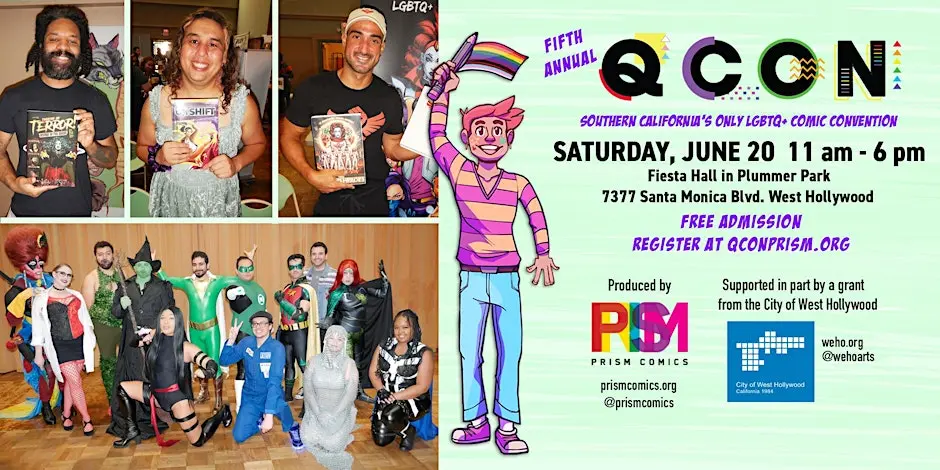 Get ready for Q CON 2026, a celebration of queer diversity, creativity, and representation in comic books, graphic novels and pop media! Celebrate LGBTQ+ comics, graphic novels and gaming at Southern California's only LGBTQ+ comic convention. Visit qconprism.org for up-to-date info on creators, cosplayers, panels and more! Admission is free Family friendly - all ages welcome Cosplay is encouraged. Show your cosplay pride! Enter the Q Con Costume Contest for fun and prizes Attend panels featuring cool comics creators New - Portfolio Review and Mentoring Sessions for creators and artists Walk-up guests can also get free tickets at the door; Eventbrite registration is recommended for faster entry