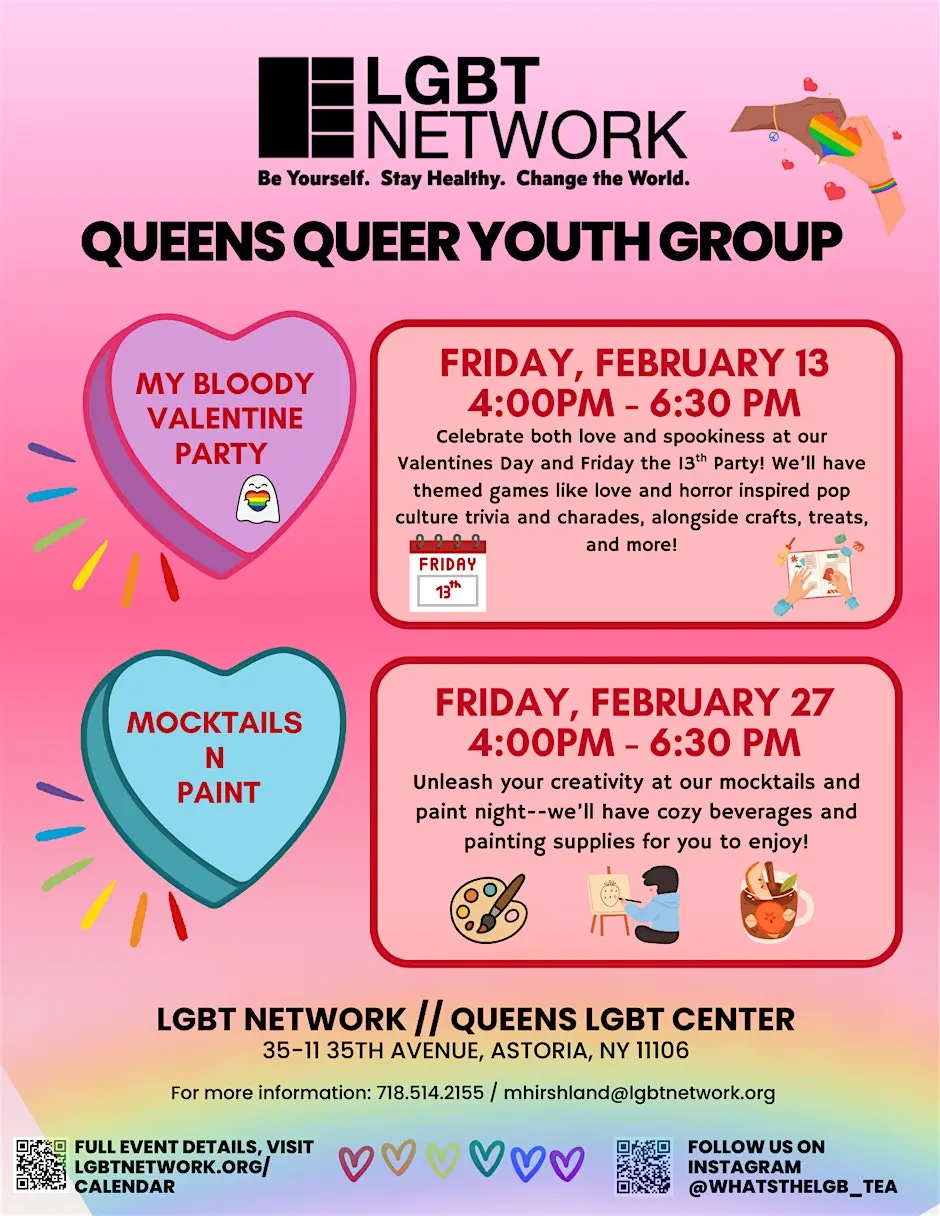 Join the fun at the Q-Center in Astoria, Queens! Unleash your creativity at our Mocktails n Paint night! We'll have cozy beverages and painting supplies for you to enjoy. Program Target Audience: LGBTQ+ and allied youth ages 13-18