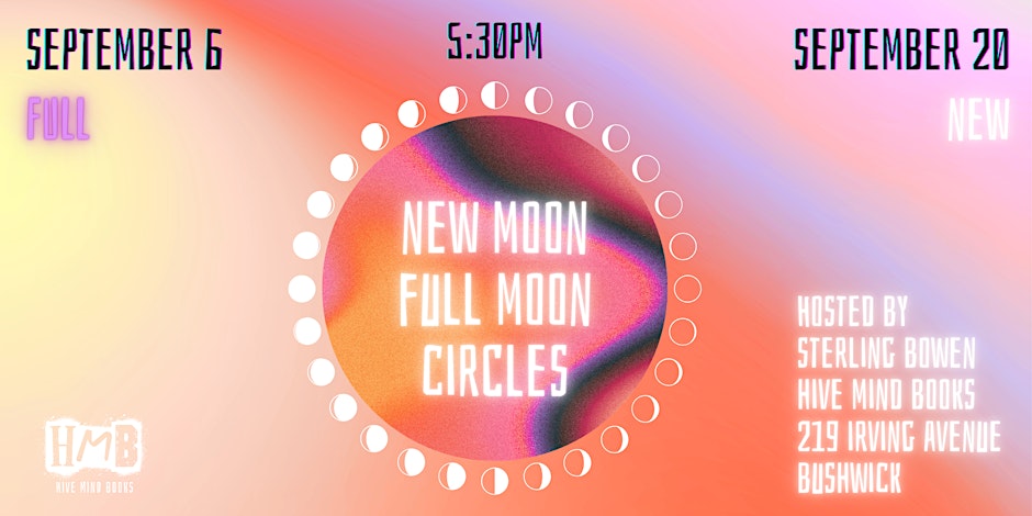 Join us at Hive Mind Books in Bushwick for a magical gathering of moon-loving queer folks! Hosted by Sterling Bowen, a writer and astrologer in the Hive Mind community, these new and full moon circles will be a blend of open discussion, reflection, meditation, and magic-making. These events are not rooted in any particular tradition, so folks of all religious and spiritual backgrounds are welcome with open arms. Free to attend. Hive Mind Books is a queer-owned and operated bookstore and coffeeshop located in Bushwick.