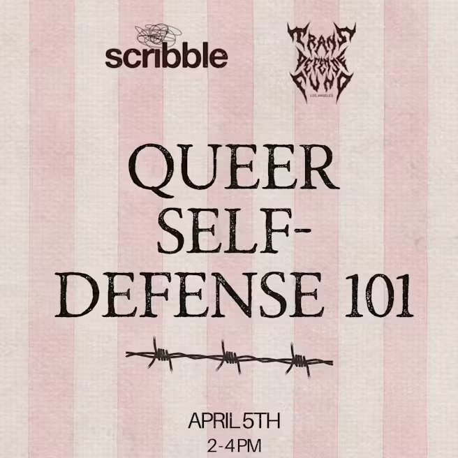Learn self defense techniques in this intro to self defense workshop for the queer community by Trans Defense Fund LA, led by instructor Vanessa Carlisle. No experience is necessary! This is a physical class, so please arrive in clothing you’d be comfortable moving in.