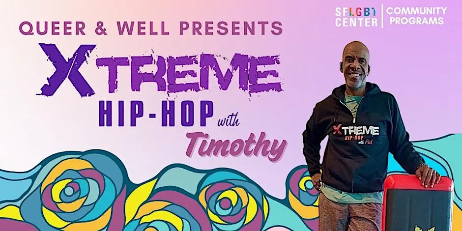 Queer & Well is a free monthly SF LGBT Center program offering where LGBTQ+ folks can explore different forms of care rooted in connection. Details about event: Xtreme Hip Hop Step is a high-energy fitness class that combines step aerobics with hip hop music and dance, offering a fun and full-body cardio workout with dynamic routines set to old and new school tracks. This inaugral Q&W step class will be taught by the SFLGBT Center's very own Director of Cultural Programs, Timothy Hampton. What it is: Xtreme Hip Hop Step is a fitness program that blends the traditional step aerobics format with the energy and rhythm of hip hop music.