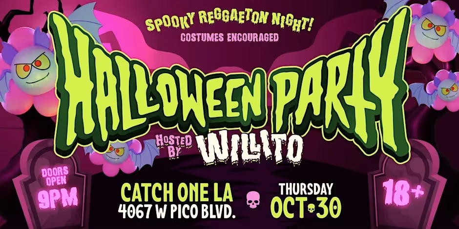 Queremos Reggaeton Halloween Costume Party Hosted by Willito at Catch One in Los Angeles. Thursday, October 30th.