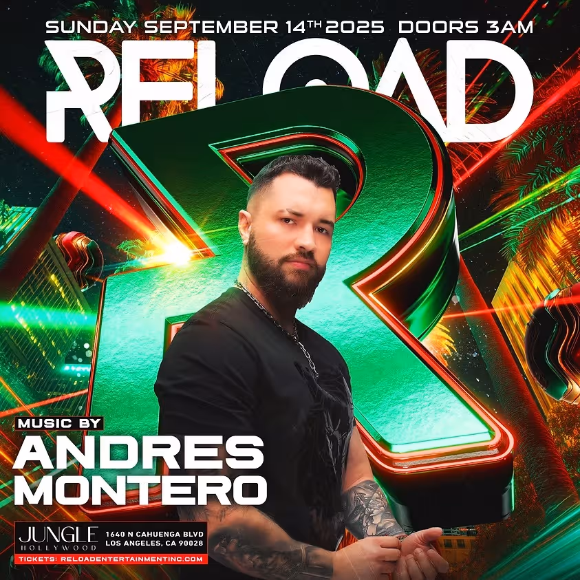 This Saturday night into Sunday morning, Andres Montero is back at Jungle in Hollywood, bringing his signature hard-driving sound that’s been taking the scene by storm. If you caught him at GPS two weeks ago, you already know the energy he brings — and this time, he’s bringing even more. Get ready for a late-night set that’ll keep you on your feet all night long. One of Reload’s resident talents, Andres is making waves, and you won’t want to miss out. Doors open at 3 AM — powered by VOID Sound.
