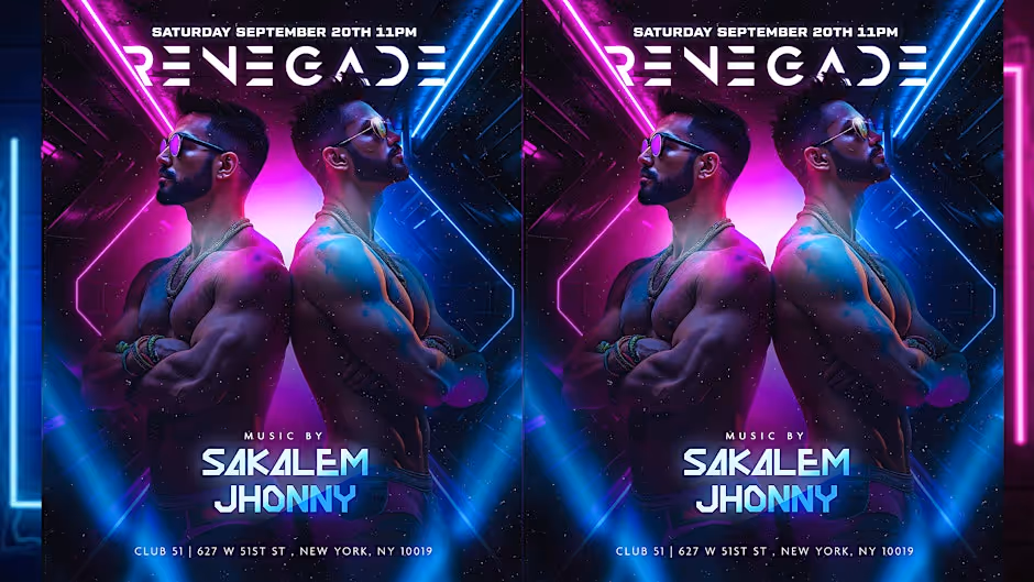 Renegade goes prime time! Saturday, September 20th | 11PM – 4:30AM We’re taking over Club 51, just a 5-minute walk from Harbor, to keep the energy alive after Alegria. Get ready for a night that doesn’t stop. Music by SAKALEM + JHONNY