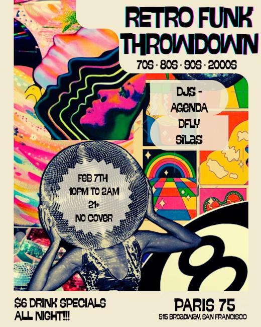 🕺 Retro Funk Throwdown is BACK at Paris 75 🪩 One night. Four decades. Zero shame on the dancefloor. Spinning 70s, 80s, 90s & early 2000s classics all night. Expect sing-alongs, grooves, and straight-up heaters.