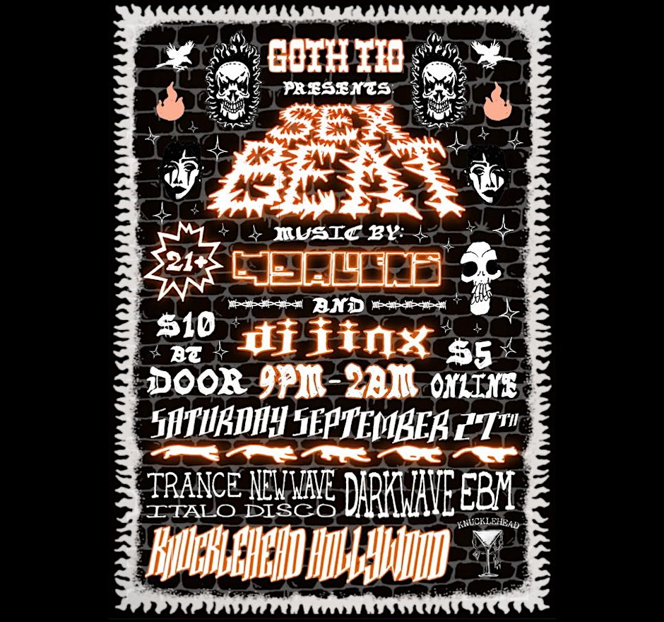 Sexbeat IV A HI-NRG goth night, mixing in fun euro trance classics from the 90's! Brought to you by Goth Tio! Let loose and dance all night to sounds by our resident DJ 49aliens.