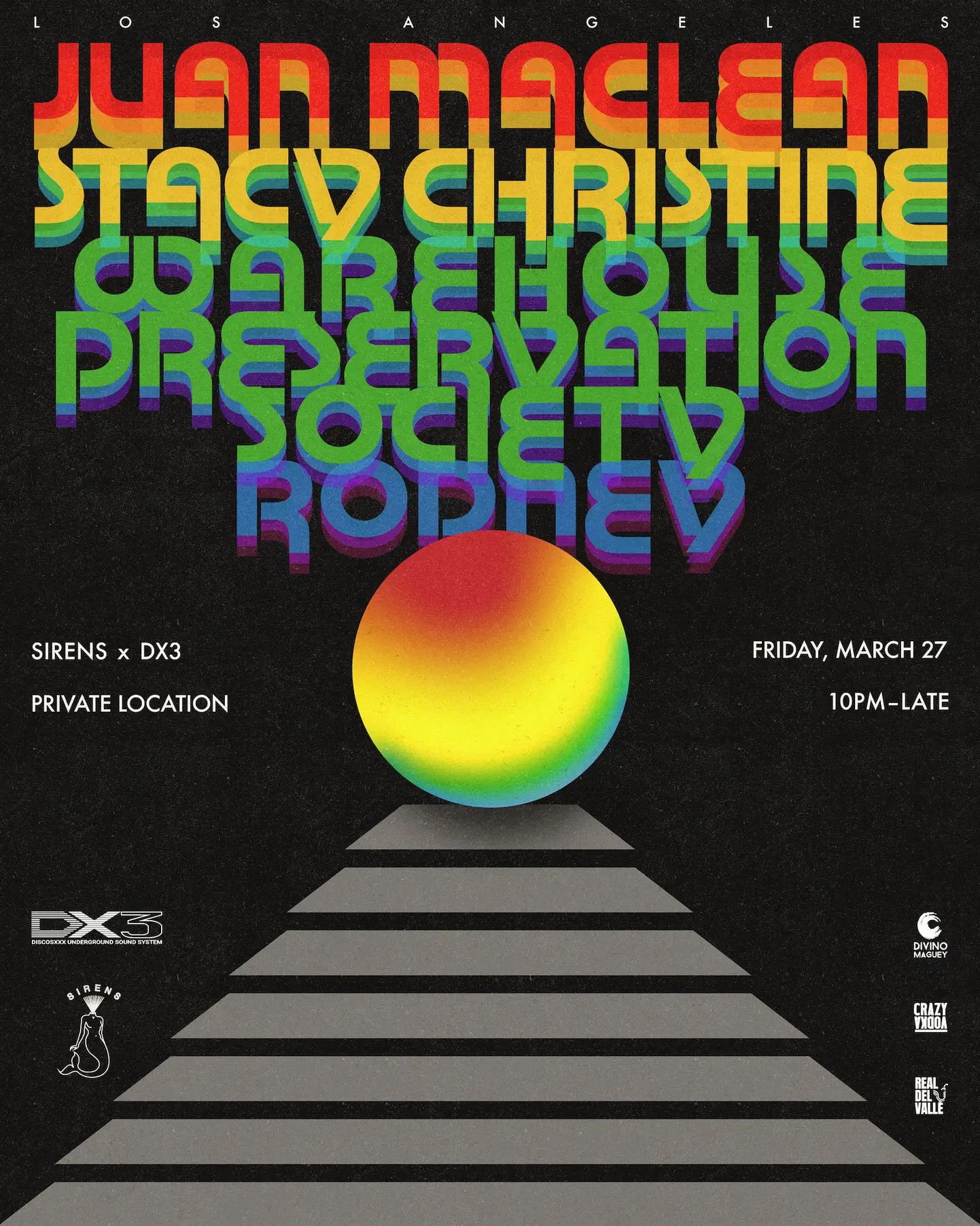 Sirens and DX3 join forces for a late-night gathering built for the heads and dance floor romantics, bringing you the legendary Juan Maclean. Juan Maclean is an American electronic musician, producer, and DJ who has played a significant role in shaping indie dance and modern house music since the early 2000s. As a key artist on the influential New York imprint DFA Records, he rose alongside the label’s formative wave, helping reignite disco-infused electronic music that bridged underground club culture and indie aesthetics while establishing a signature sound rooted in classic disco, house, electro, and synth-driven pop. He has earned a reputation for dynamic DJ sets in which he balances vintage warmth with forward-thinking energy, blending timeless grooves with a distinctly modern edge. Sirens queen Stacy Christine, LA heavyweights Warehouse Preservation Society, and stellar selector Rodney will join him.