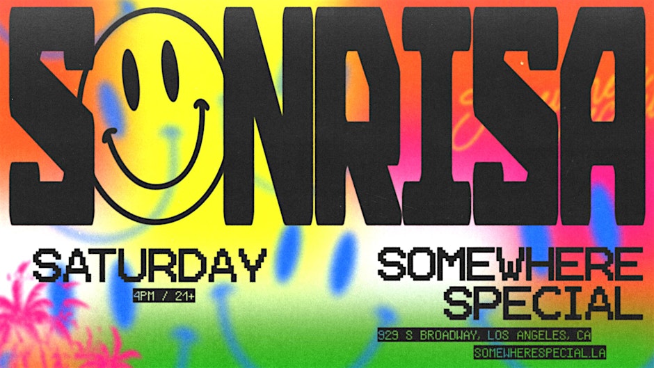 LA'S NEWEST ROOFTOP BAR JUST GOT BETTER. We're bringing the heat with SONRISA: a weekly latin dance party featuring some of the best emerging talent from Los Angeles and beyond. 21+ FREE w/ RSVP Somewhere Special (Rooftop at STILE) 929 S Broadway Los Angeles, CA 90015 🌆 ABOUT SOMEWHERE SPECIAL 🌆 Somewhere Special is the new rooftop venue, bar, and restaurant located in Downtown Los Angeles atop the historic United Theater and attached to the STILE Hotel on Broadway. Somewhere Special features top-knotch programming, a curated drink and food menu, and the best skyline views of Downtown Los Angeles. 🥗🍾 FOOD, DRINKS & BOTTLE SERVICE 🥗🍾 If interested in our food and drink menu or reserving a table or bottle service, please email us at info@somewherespecial.la.