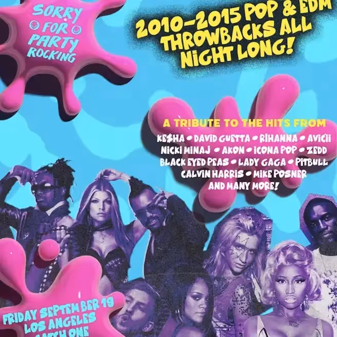 Take it back to a simpler time, where pop and dance music went hand in hand at every party. The only party where you can get down to these iconic club bangers and fist bump all night long like it’s still 2012! Good vibes only! Featuring the music of... KE$HA • David Guetta • Rihanna • Avicii • Nicki Minaj • Akon • Icona Pop • Black Eyed Peas • Lady Gaga • Pitbull • Calvin Harris • ZEDD • Swedish House Mafia • Katy Perry • T-Pain • Lil Jon • Jason Derulo • DJ Snake • Selena Gomez • Afrojack • Kid Cudi • A-Trak • Drake • Beyonce • Dillon Francis • Soulja Boy • Miley Cyrus · Steve Aoki and many more! *This is a tribute dance night. None of the artists mentioned will be appearing at this event, nor are they affiliated with the event. Follow us on Instagram for updates and for song requests!