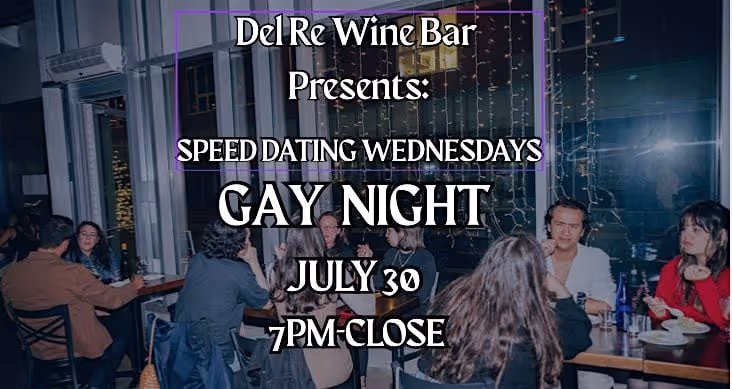 Looking for love, laughs, or just a fun night out? Come flirt with fate at Speed Dating -Gay Night- Half the men will stay comfy and sit and the others will rotate. Check-in starts at 7:00 PM, and the dating dash begins at 7:30 PM sharp. Every 3 minutes, you’ll switch seats and meet someone new—just enough time to feel the vibe (or plan your escape). The entire expeirece will last around 45 min to and hour. Feel free to come earlier than 7 to take advantage of our happy hour before we start! We’ll set you up with a name tag and postcards to jot down who gave you butterflies—or who gave you the ick. After the final round, stick around to mingle, swap stories, and maybe lock eyes across the room... again. No pressure. Just possibilities.