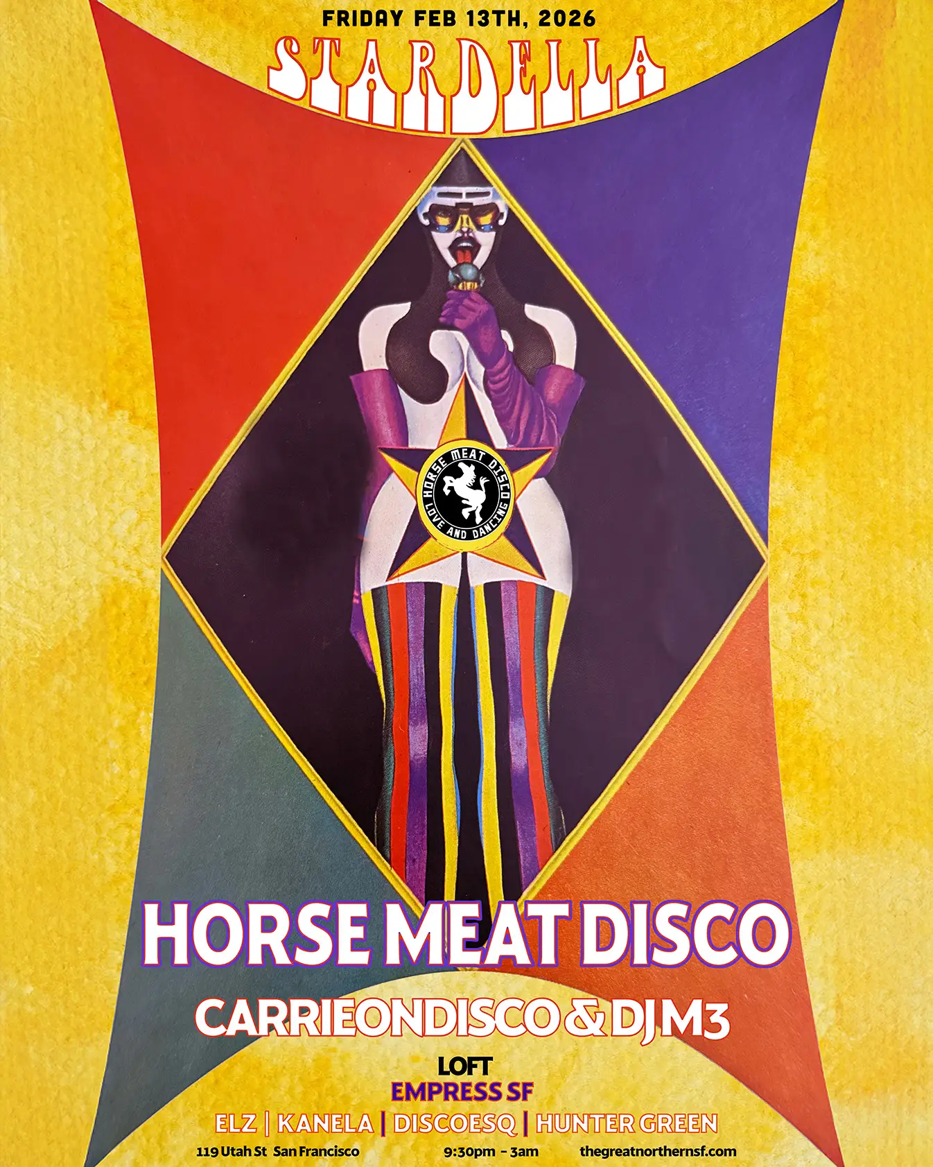 Welcome to STARDELLA - HORSE MEAT DISCO featuring CARRIEONDISCO & DJ M3 in the Loft at The Great Northern! Get ready to dance the night away in the loft with EMPRESS SF on February 13, 2026, at 9:30 PM (Pacific Time). It's going to be a night filled with amazing music and good vibes. Don't miss out on this epic event!