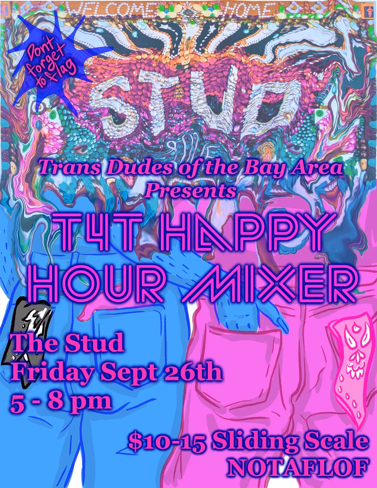 This upcoming Friday make SURE you swing by The Stud at 5 pm for TDBA’s T4T happy hour mixer. Meet some hot trans people, flirt a little, laugh a little, and find some fellow trans kinksters to kick off Folsom weekend with! $10-$15 suggested sliding scale NOTAFLOF 1123 Folsom St Sept 26th 5-8 pm Don’t forget to flag ;)