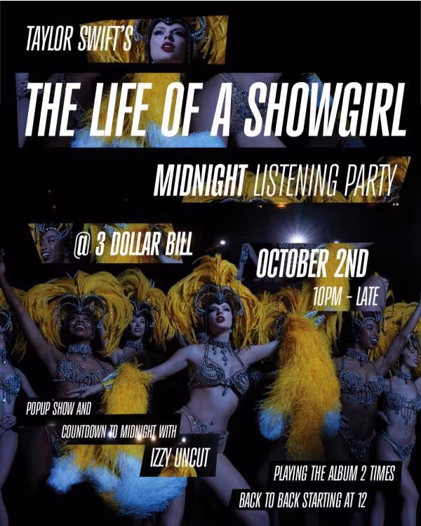Celebrating the much anticipated release of Taylor Swifts latest album “The Life of A Showgirl” come to 3db and ring the album in at midnight with host Izzy Uncut. Doors at 10pm Album played Twice thru at 12am