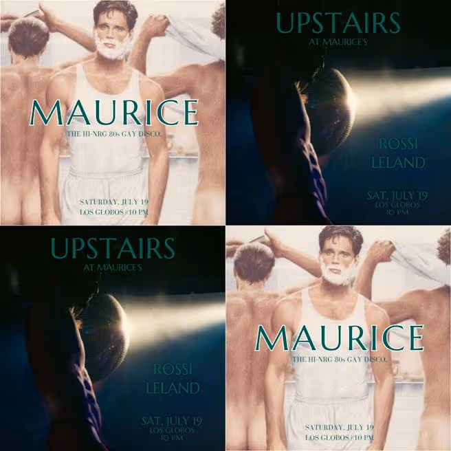 21+ event. MAURICE is a euphoric return to steamy sweat-fueled nights of dancing to hi-nrg & 80s gay disco. UPSTAIRS at Maurice's: Leland is back and this time, he has Vince Rossi with him. Partnered with Freddie, with PrEP and DoxyPEP clinics.