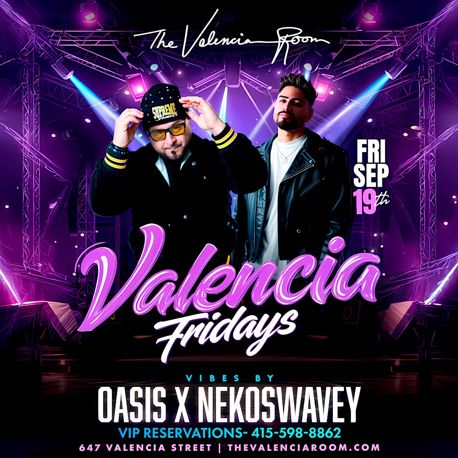 Valencia Fridays! Hip Hop Vibes to start ur weekend right! Squad Up n Slide Thru. 2x floors of music! ๐Music By: @DJOASIS + @NEKOSWAVEY ๐ FREE RSVP Guest List before 11pm ๐Hip Hop - ๐พHard Drinks - ๐ Mood Bottle Service Reservations - 415-598-8862 โโ #hiphop #openformat #SanFrancisco #SF #thecity #sfgate #Bayareabuzz #Mission #sfparty #sfevents #sfweekly #partysf #weeklysf #sanfranciscoparty #bayarea #sfclubs #sfclubbing #dothebay #missionsf #sfmission #bottleservice #vip #nightlife #nightclub #voidacoustics #thevalenciaroom