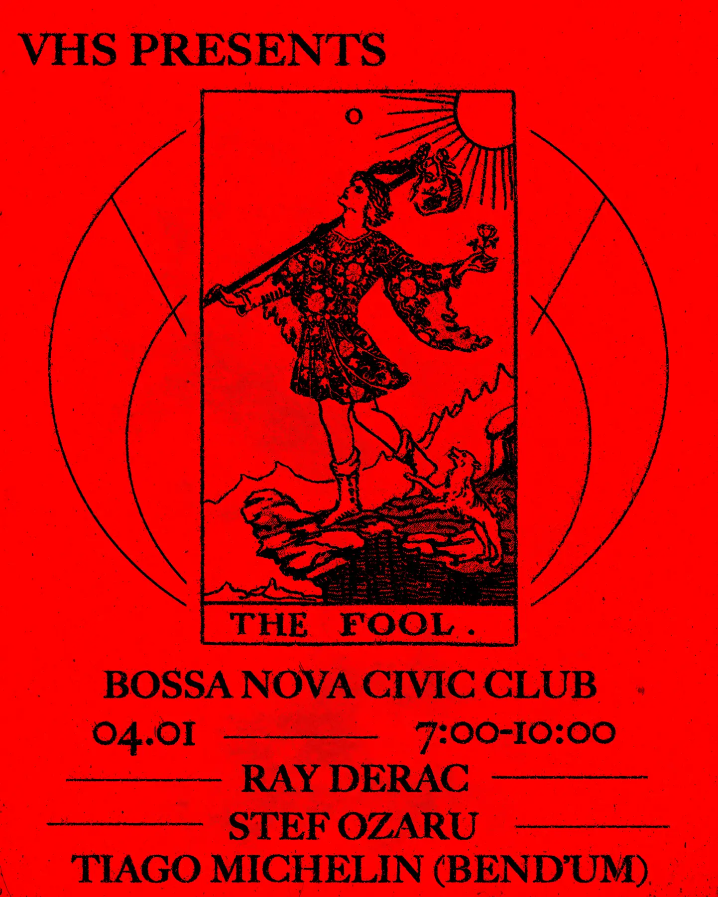 VHS BOSSA Happy Hour presents: The Fool Join us for a night of hypnotic, deep techno from start to finish. SET TIMES 7–8PM: Stef Ozaru 8–9PM: Ray Derac 9–10PM: Tiago Michelin (bend’um) Event admin svalle0393 Update this event La
